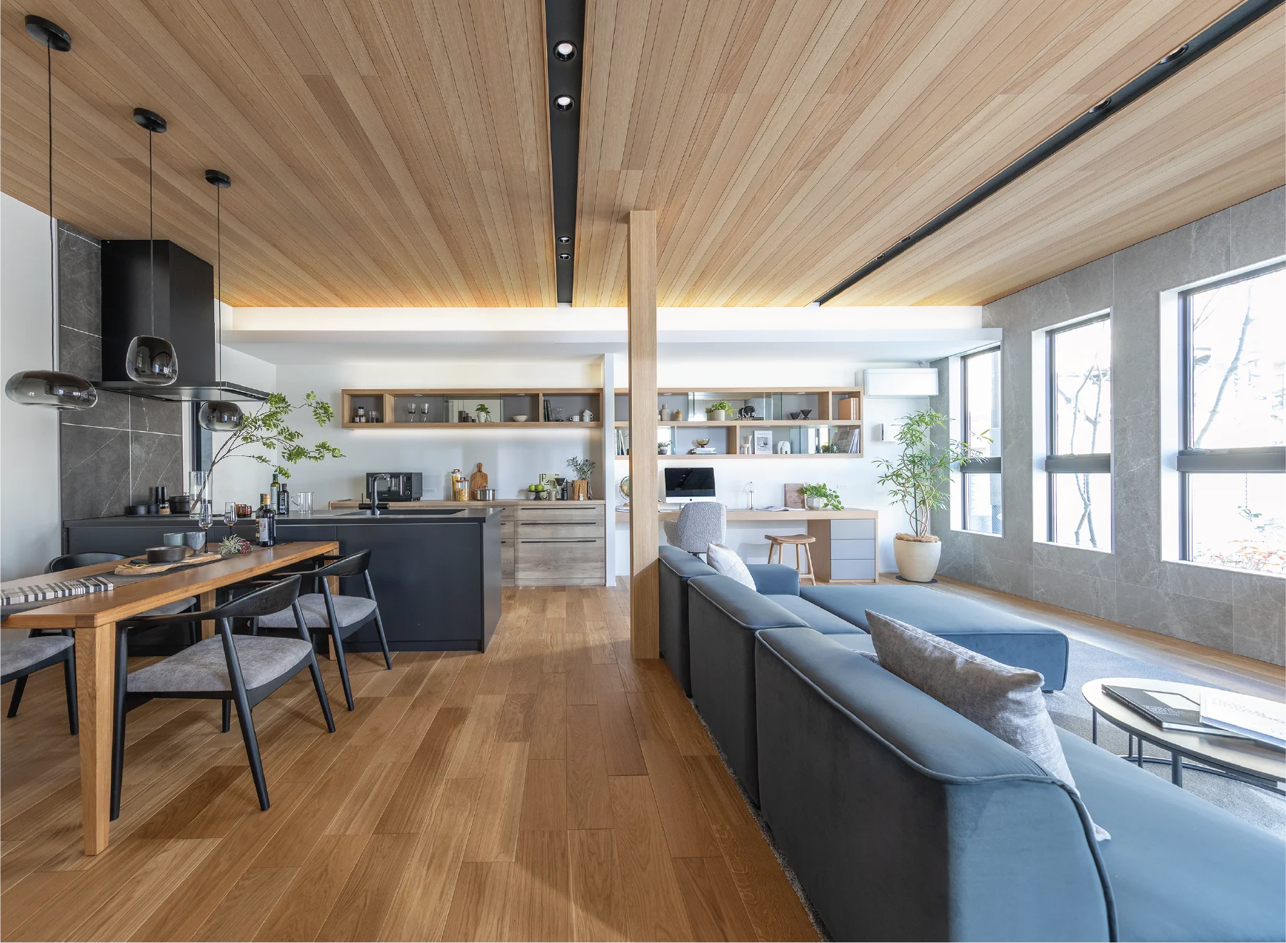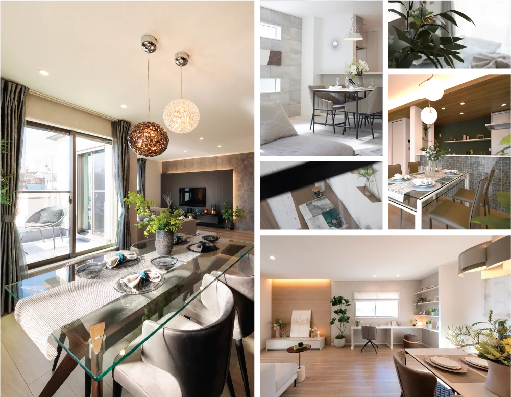 住まいの内観は、日々の暮らしに最も近い場所。お客様の好みやライフスタイルに寄り添い、空間の広がりや動線、素材や照明計画まで丁寧に設計します。くつろぎの時間も、家族が集うひとときも、自然と心が満たされる。そんな住まいを一邸一邸かたちにします。